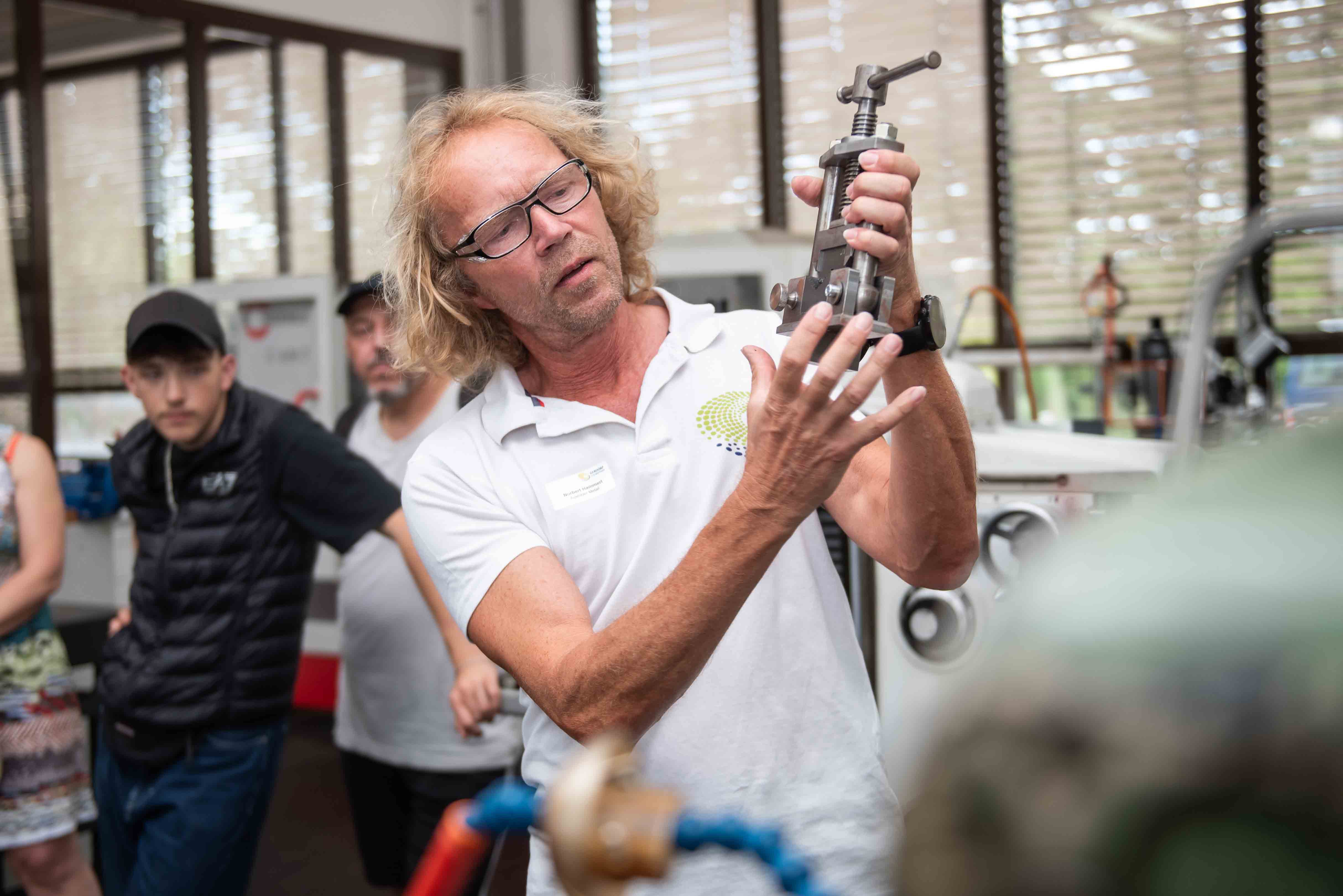 Neben Führungen durch die Werkstätten, das Technikum und durch die gesamte Bildungsakademie stießen die Azubi-Showversuche auf großes Interesse. Im Labor zauberten angehende Laboranten ein chemisches Weißbier – sogar mit Schaumkrone – aus zwei durchsichtigen Flüssigkeiten, während an einer der Anlagen im Technikum aus unscheinbaren Ausgangslösungen Seifenblasenlösung hergestellt, abgefüllt und anschließend etikettiert wurden. In der Werkstatt der Mechatroniker sorgte ein elektronischer „Barkeeper“ für die notwendige Erfrischung: mit dem selbstgebauten „Cocktailautomat“ bekam jeder Gast auf Knopfdruck einen leckeren, alkoholfreien Cocktail serviert. Wer nach den vielen Eindrücken eine Stärkung brauchte, konnte auf dem sommerlichen Campus bei „GENDORF-Burgern“, Eis und mit musikalischer Unterhaltung durch die Band „Lean Back“ den Abend ausklingen lassen und in der Fotobox ein paar Erinnerungsfotos schießen.