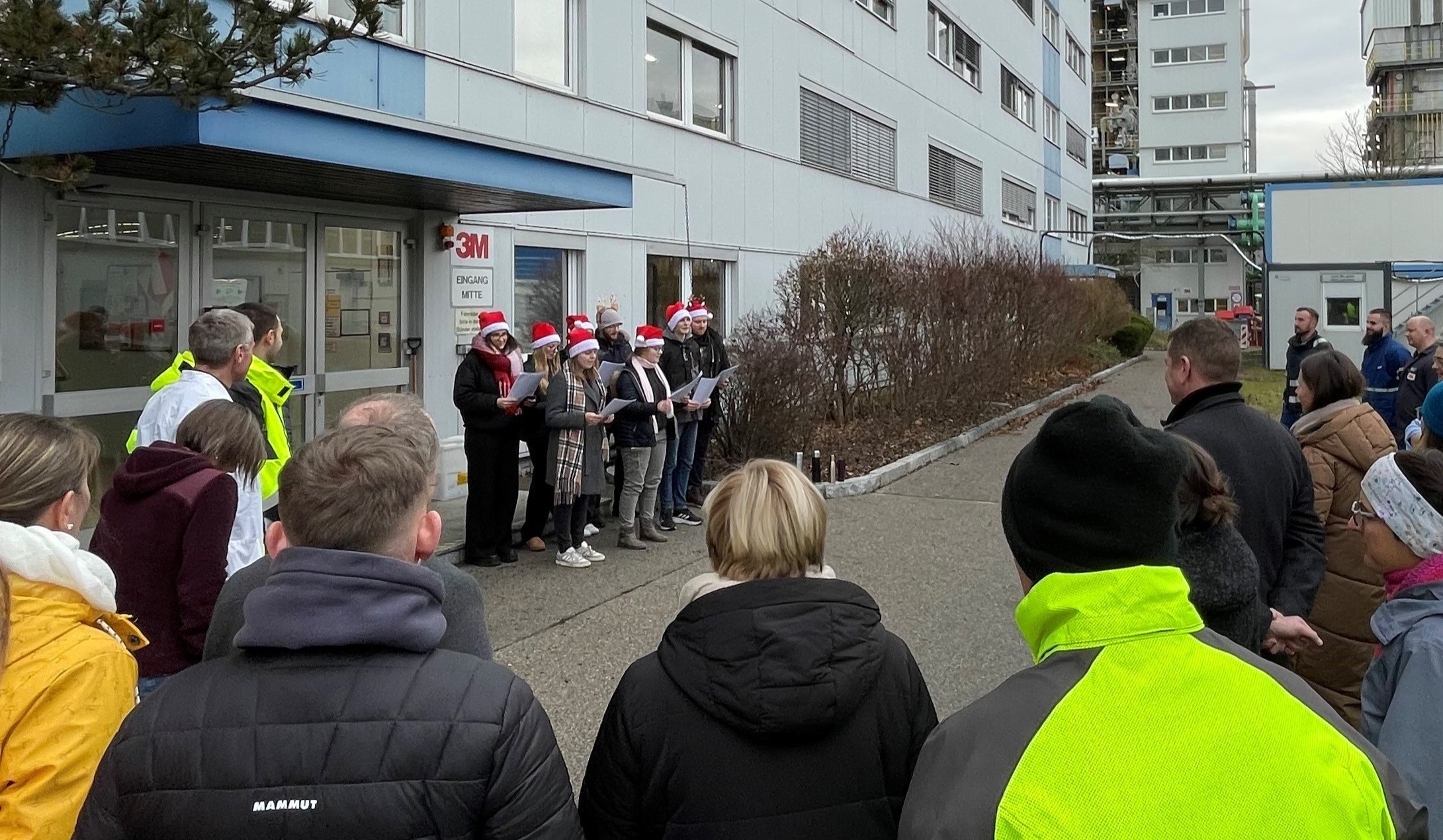 Mit einer besonderen Aktion haben die Chemielaboranten des ersten Lehrjahres am Montag, den 16. Dezember, für vorweihnachtliche Stimmung im Chemiepark gesorgt und dabei etwas Gutes getan. An verschiedenen Standorten im Park begeisterten die Azubis mit ihrem Auftritt und sammelten Spenden für das Hilfsprojekt „Suibamoond“. Der Verein unterstützt Kinder und Jugendliche, die körperliche, sexuelle oder seelische Gewalt erlebt haben.